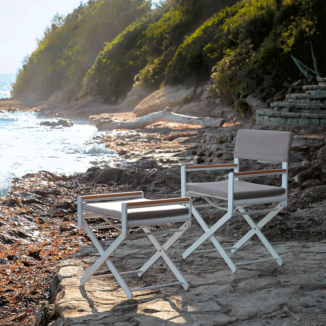 Skládací křeslo OSKAR v duchu režisérské klasiky přináší do venkovního stolování uvolněnou eleganci. Připomíná chvíle strávené u moře, kde se pohodlí a styl snoubí zcela přirozeně.
