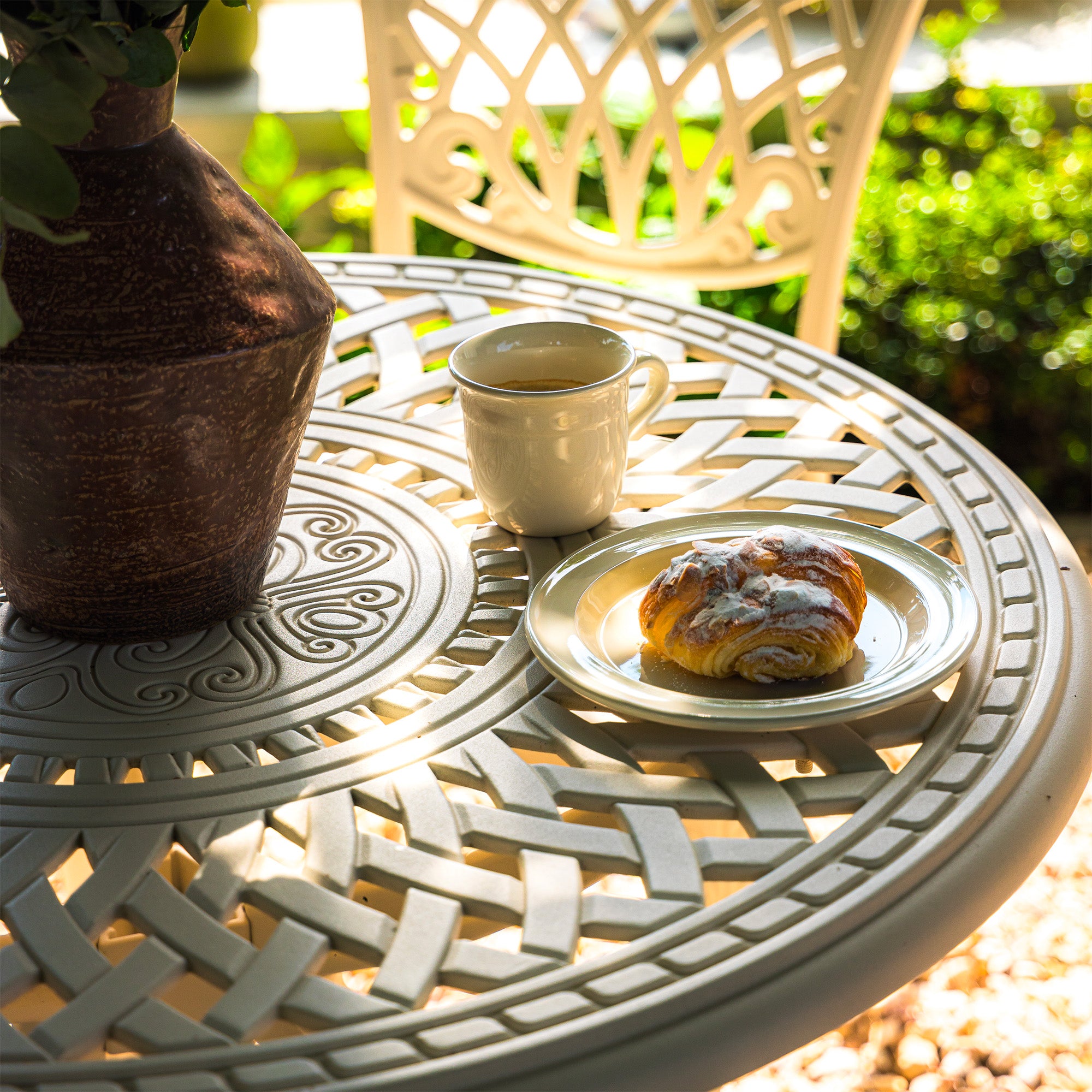 The Ashbury 900 Table is 90cm table that is the perfect size for a bistro set, light enough to be easily moved and heavy enough that they won’t blow away. Paired with the Ashbury dining chairs, they make a beautiful addition to your garden or balcony.