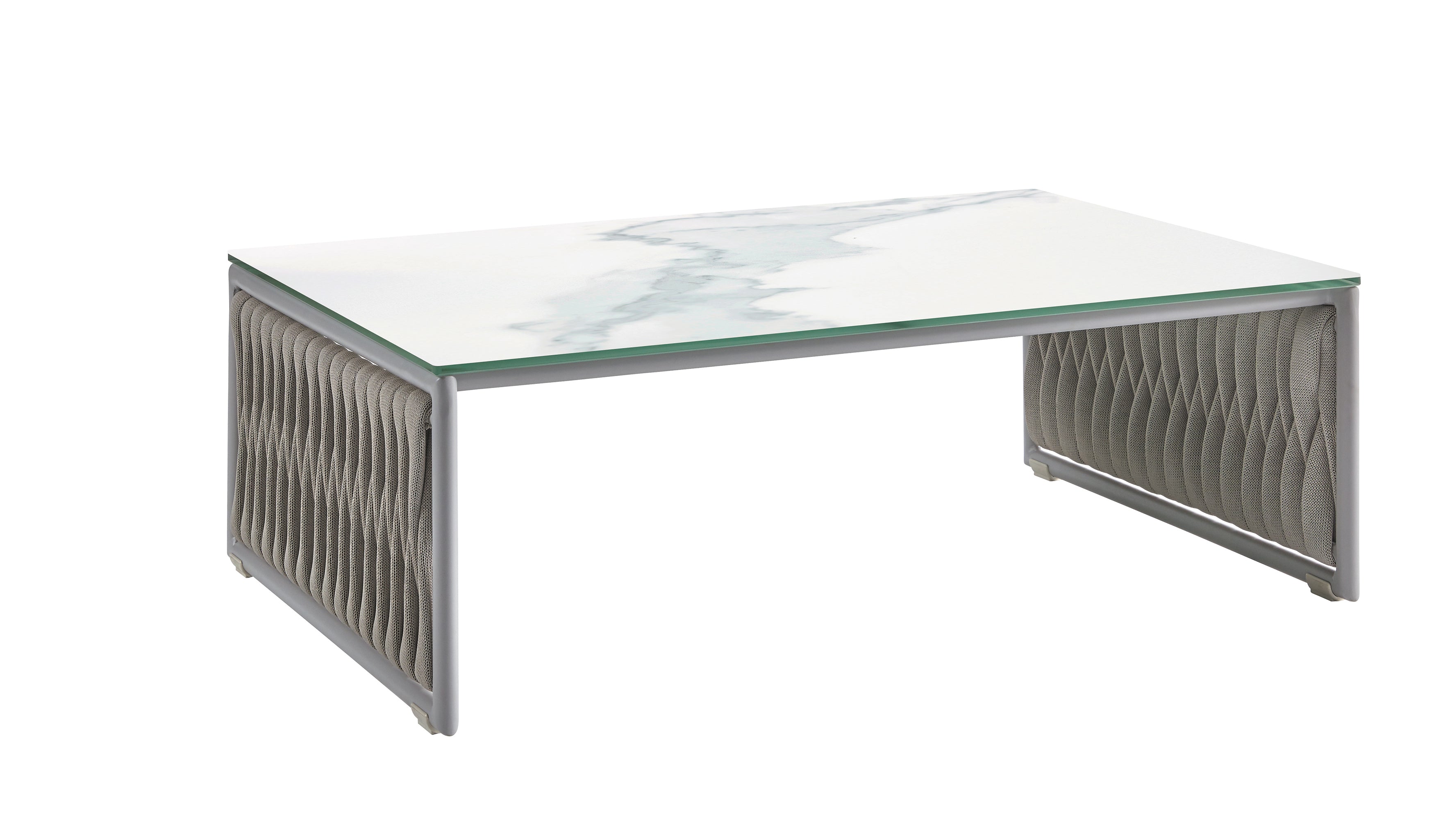 The Basket coffee table with a ceramic top anchors the seating area with quiet balance. It provides a natural surface for everyday rituals, supporting the space without drawing attention to itself.