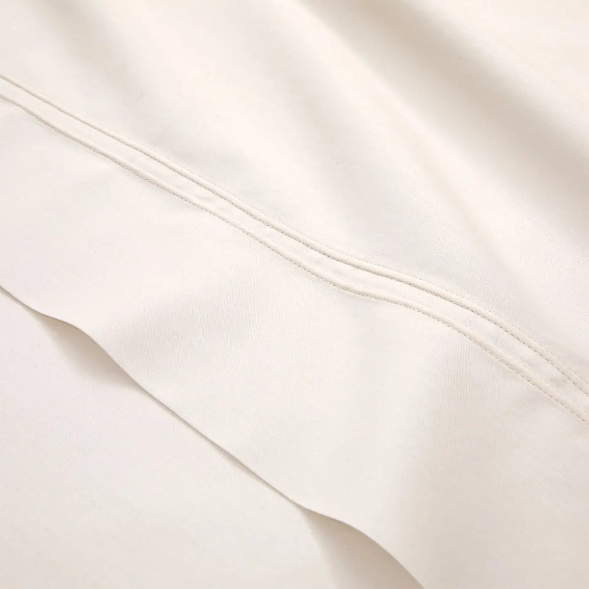 A luminous nacre tone inspired by the natural sheen of a pearl. The Triomphe collection in Nacre by Yves Delorme is crafted from luminous cotton sateen whose silky surface reveals the subtle depth of this elegant shade.