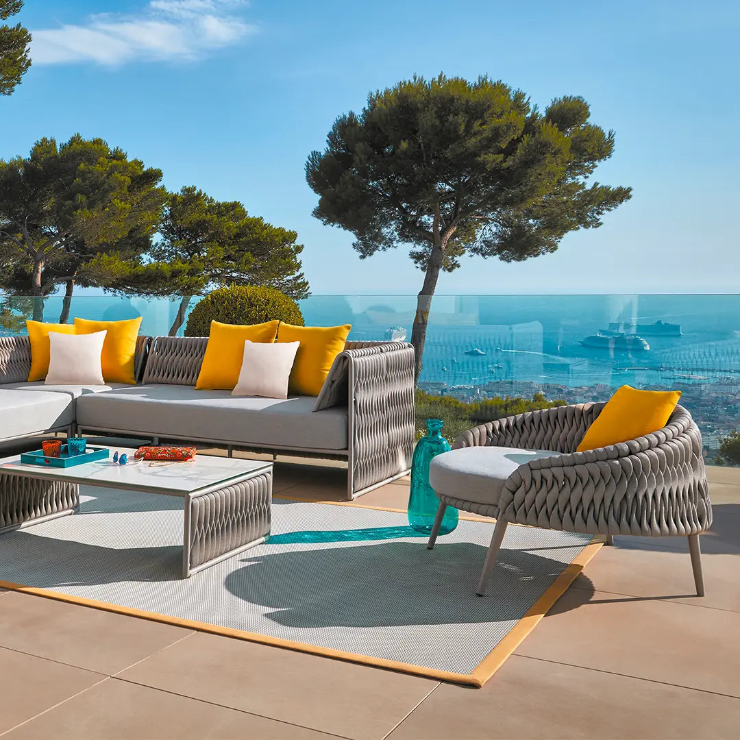 With its circular form, this chair encourages lingering moments and a more relaxed way of sitting outdoors.